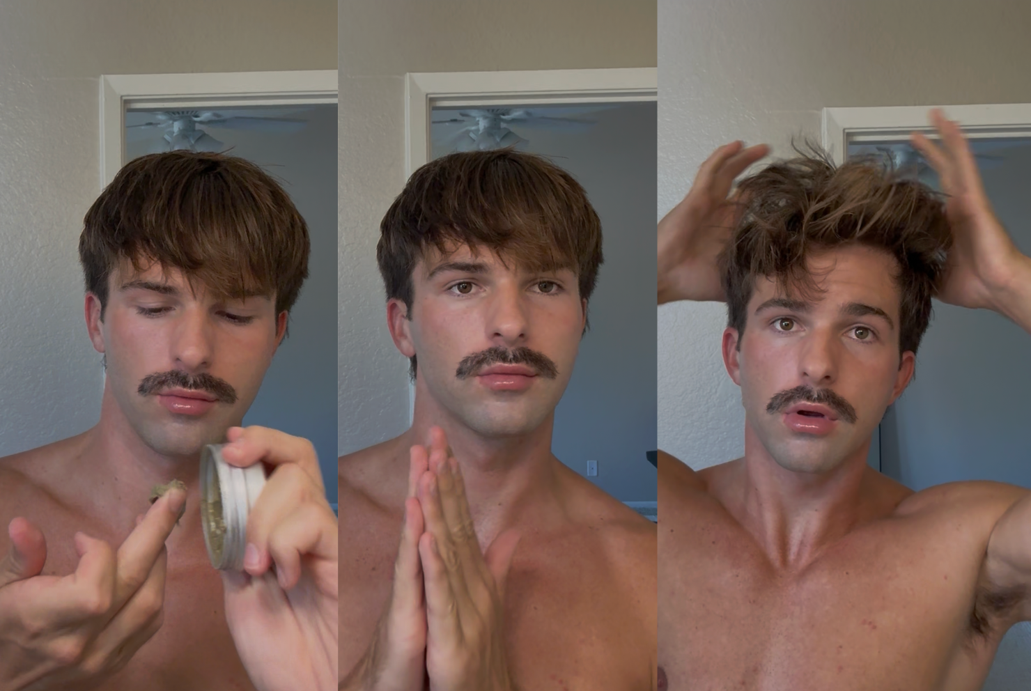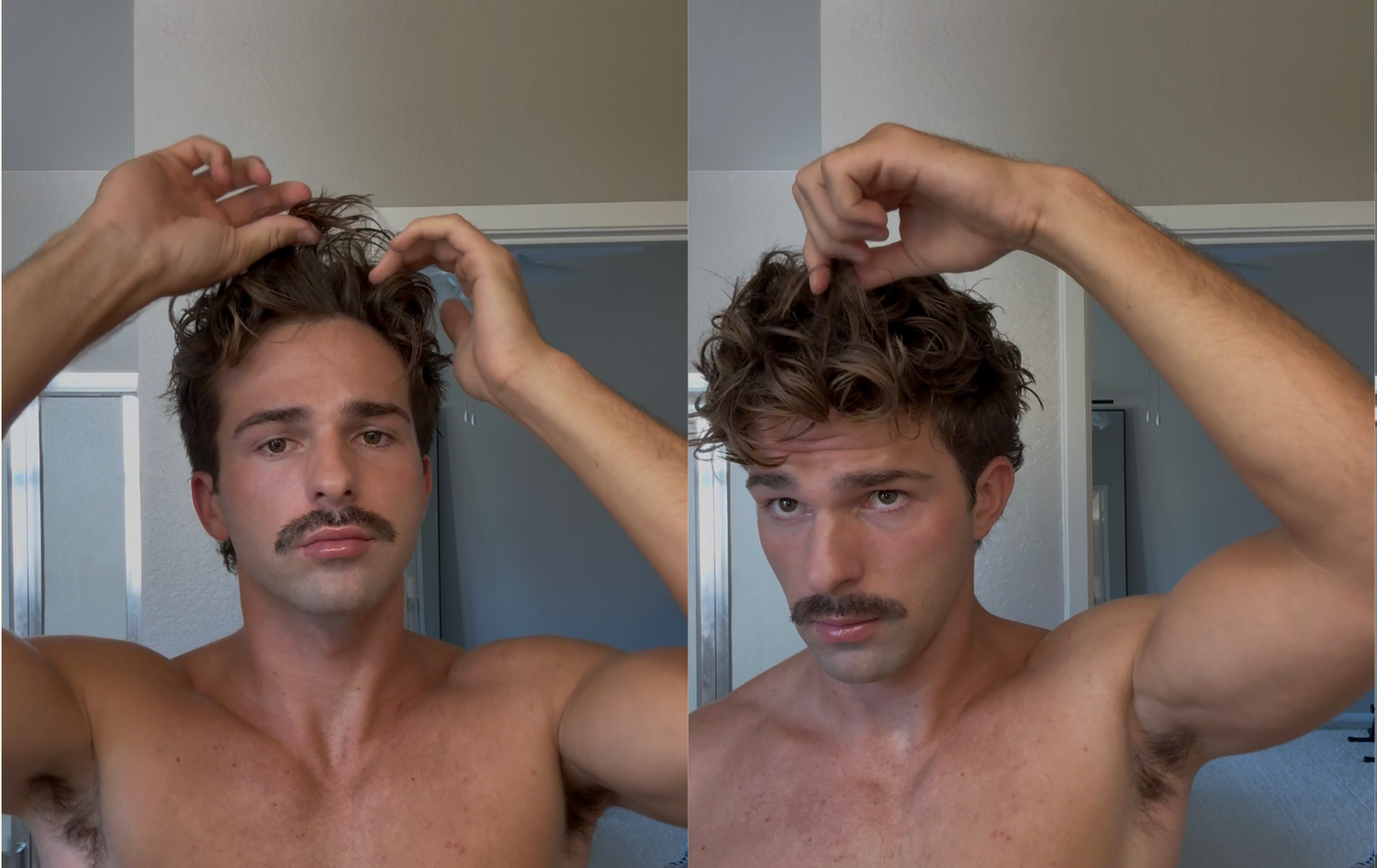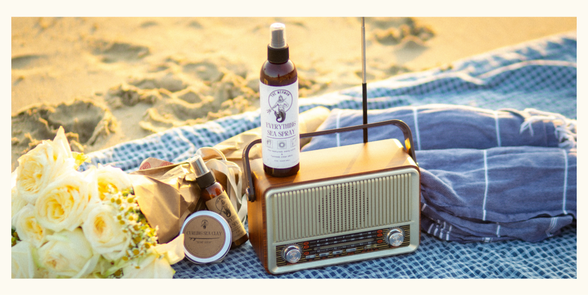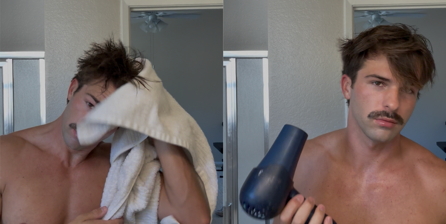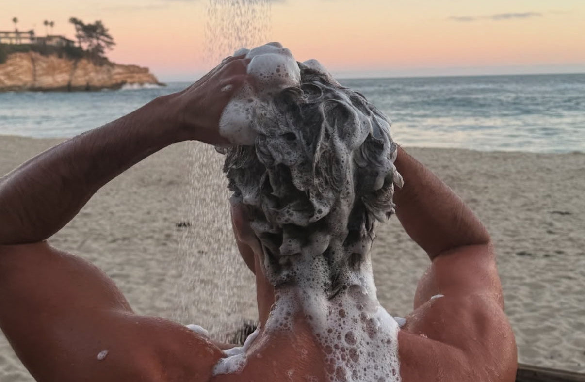 If you already have naturally curly or wavy hair, this tutorial works for you as well. It will accentuate and define your existing curls. Begin with clean, washed hair. Use a gentle daily shampoo and conditioner. The Merman Hair Boosting Shampoo and Conditioner is gentle enough for daily use and preps your hair for volume and curl. Tidy up your look with a shave, and prep your skin with Merman’s Everything Sea Spray.