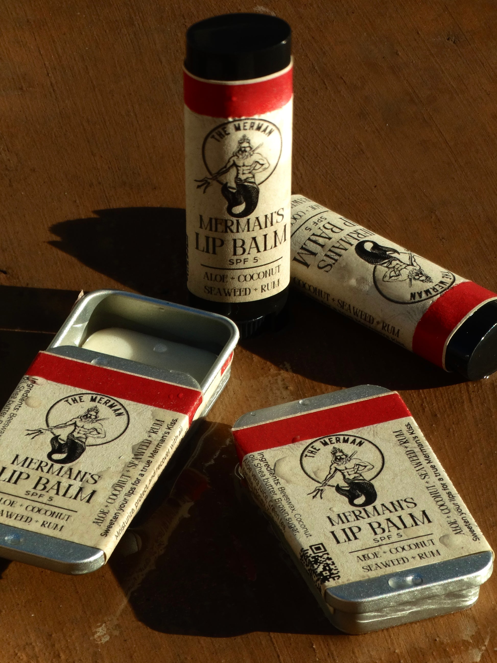A Merman must always be prepared for his Mer-lady. Don't get caught with dry, chapped fish-lips. Lather up, protect from sunburn, and wow your Mer-lady with the signature Merman taste, aroma, and authentic seaside experience.